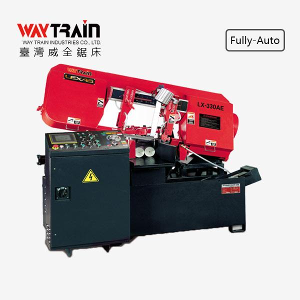 • LX-330AE 全自動帶鋸機 彩色控制面板及長度譯碼器 變頻器控制鋸帶無段變速 內建八種語言 十種切削工作設定 油壓鋸帶張力裝置