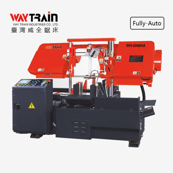 • WA-7062HA 雙柱式全自動帶鋸機 觸控螢幕及九種切削工作設定 油壓鋸帶張力裝置 油壓馬達自動鐵屑輸送裝置 油壓鋸帶張力夾持裝置 變頻器控制鋸帶無段變速 油壓式前培林支架移動及定位 重型切削帶鋸機 高切