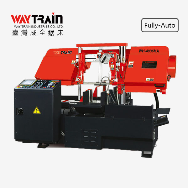 • WH-4036HA 雙柱型帶鋸機 全自動系列 觸控螢幕使用LED背光,顯示清楚明亮 譯碼器測量送料長度 油壓鋸帶張力裝置 變頻器控制鋸帶速度